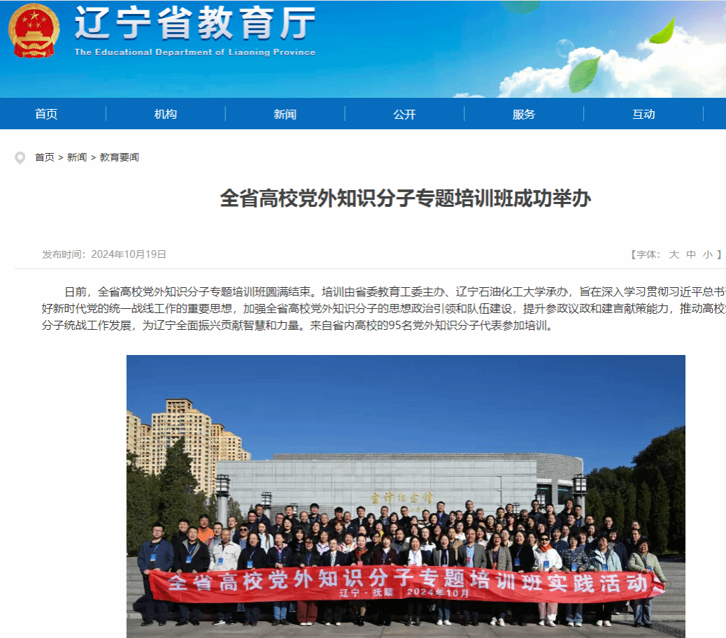 编者按:10月19日,辽宁省教育厅网站、辽宁统战微信公众号对我校成功举办全省高校党外知识分子专题培训班进行了宣传报道。现将相关报道转载如下: