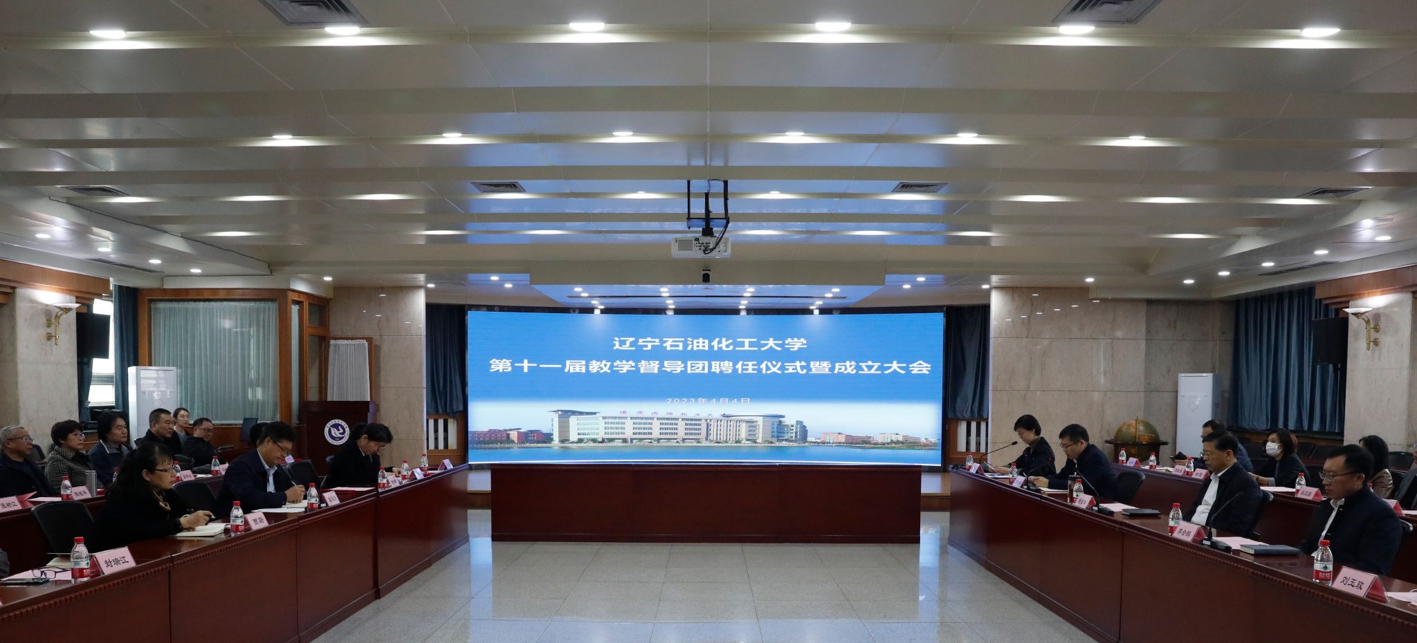 4月4日下午,学校第十一届教学督导团聘任仪式暨成立大会在党政办公楼第七会议室举行。校长钱建华、副校长曹江涛出席会议,教务处处长李会鹏、正处级督导员刘玉玫、第十一届教学督导团团长王海彦及全体成员参加会议。会议由教学质量监控与评估中心主任栾艾华主持。