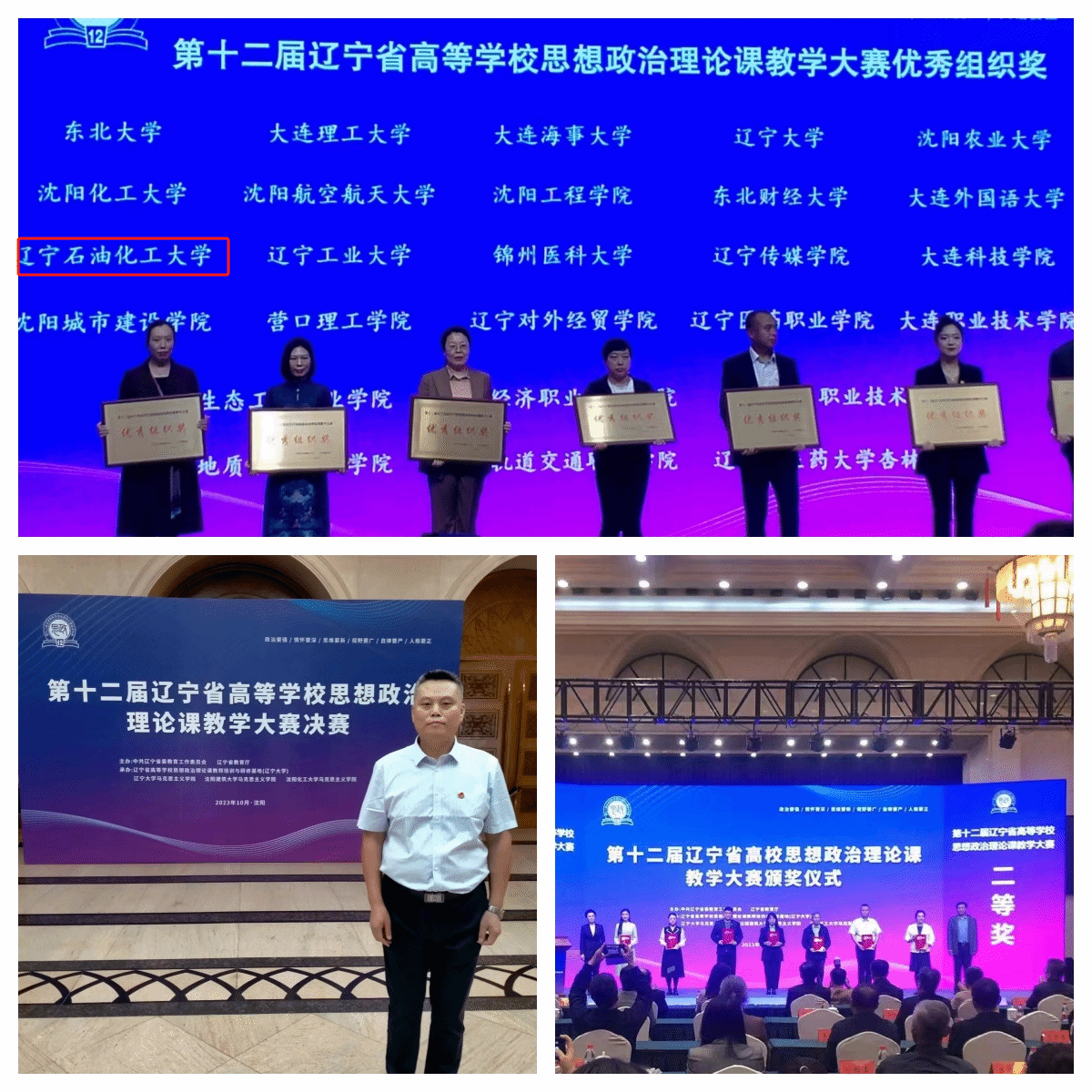 为贯彻落实“2023年度辽宁省高校思想政治理论课创优计划”系列活动的通知要求,中共辽宁省委教育工委和辽宁省教育厅联合主办的第十二届辽宁省高校思想政治理论课教学大赛,历时半年多,经过初赛、复赛和决赛三个阶段的激烈角逐,于10月13日正式公布了本届大赛的获奖名单。本次大赛共有全省85所高校364名教师进入复赛,65名教师参加决赛。我校马克思主义学院连续六年获得优秀组织奖。本届大赛我校共选派四名教师参赛,其中姚鹏老师进入决赛获“毛泽东思想和中国特色社会主义理论体系概论”组二等奖,许三春老师获得“中国近现代史纲要”组二等奖。